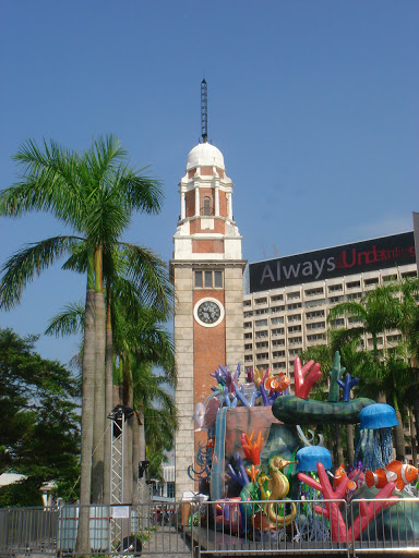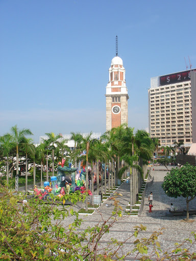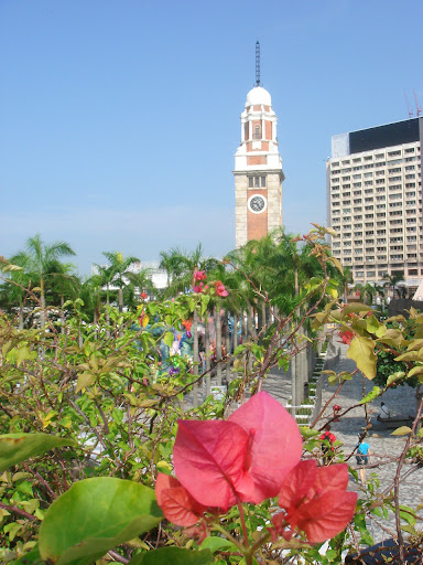走到星光大道的尾端就看到鐘塔,在鐘塔旁是昨天我們搭天星小渡輪的地方及海港城