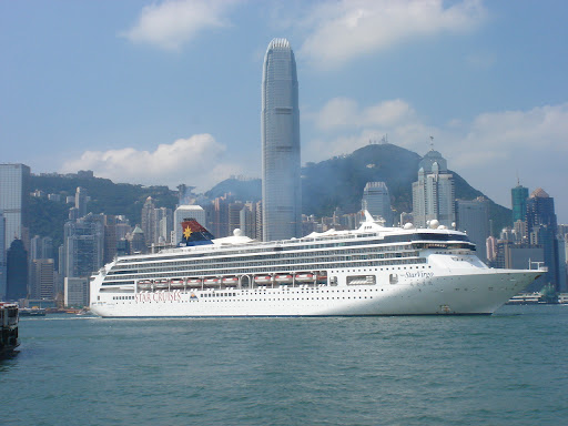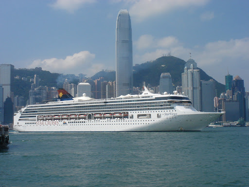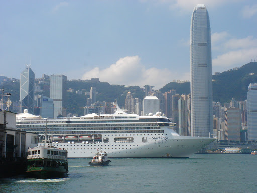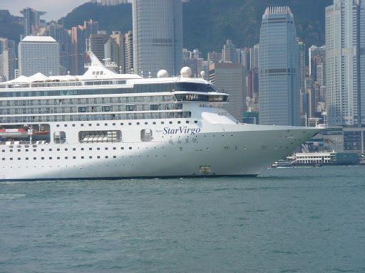 從海港城出來時剛好看到"處女星號"正要靠岸