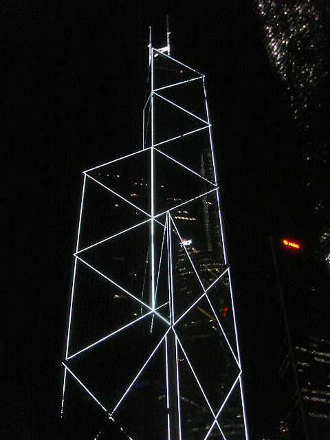 我們的打算是要到中銀大廈,就是左邊外觀是有亮梯形白光的建築物