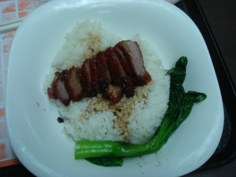 青菜一條,幾片叉燒肉,一碗白飯蓋上去,淋上肉汁,沒有附湯飲料